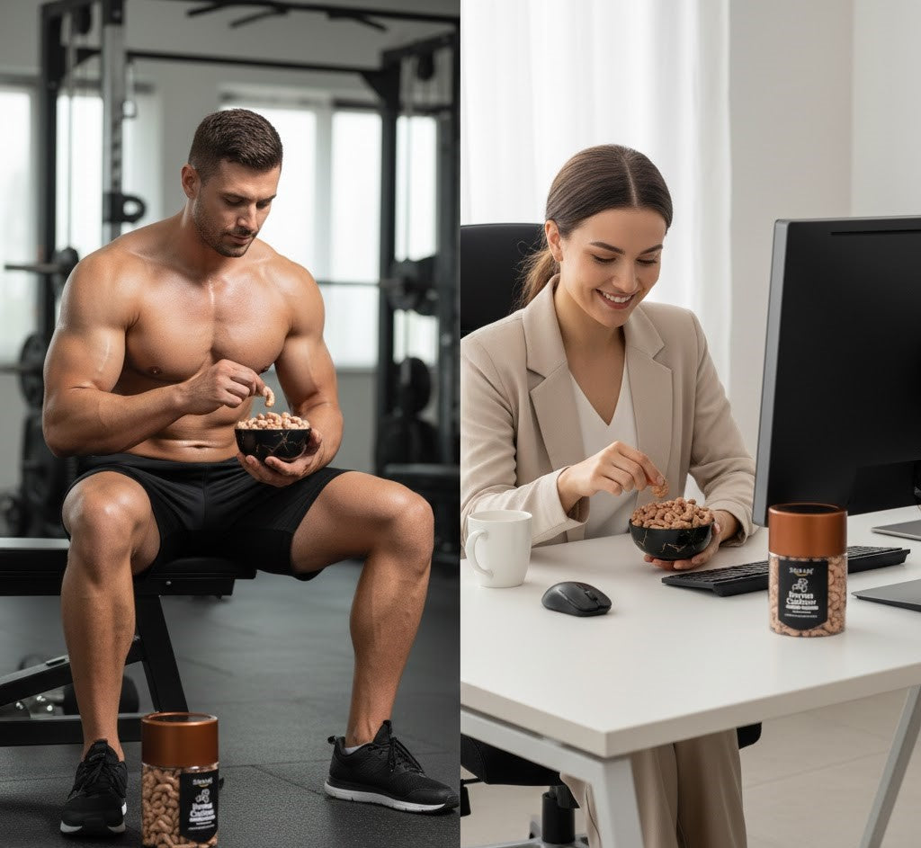 NUTRIENT-RICH HEALTHY SNACK: A powerful source of plant-based protein, heart-healthy fats, and essential minerals like Magnesium, Zinc, and Iron. These gluten-free and vegan-friendly nuts are an ideal energy-boosting snack for fitness enthusiasts and weight management diets.